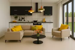 Salon lumineux avec cuisine ouverte 30 m² donnant sur la terrasse et le jardin