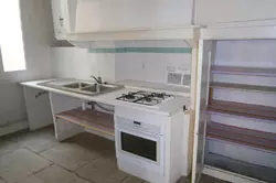 A separate equipped kitchen (gas hob, electric oven, storage)